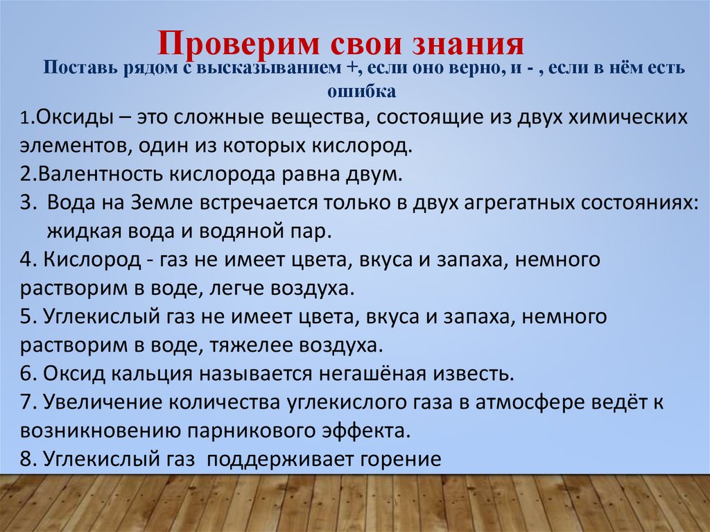 Проверим свои знанияПоставь рядом с высказыванием +, если оно верно, и - , если в нём есть