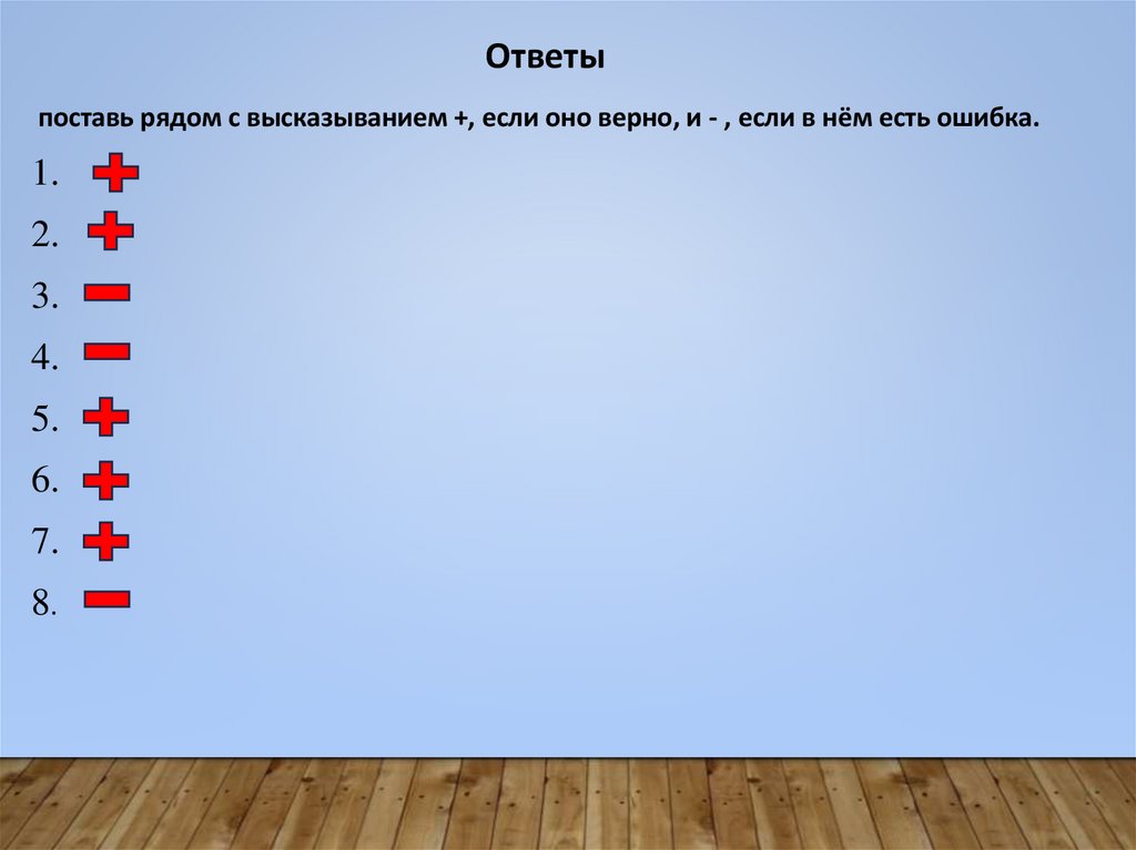 Ответыпоставь рядом с высказыванием +, если оно верно, и - , если в нём есть ошибка.