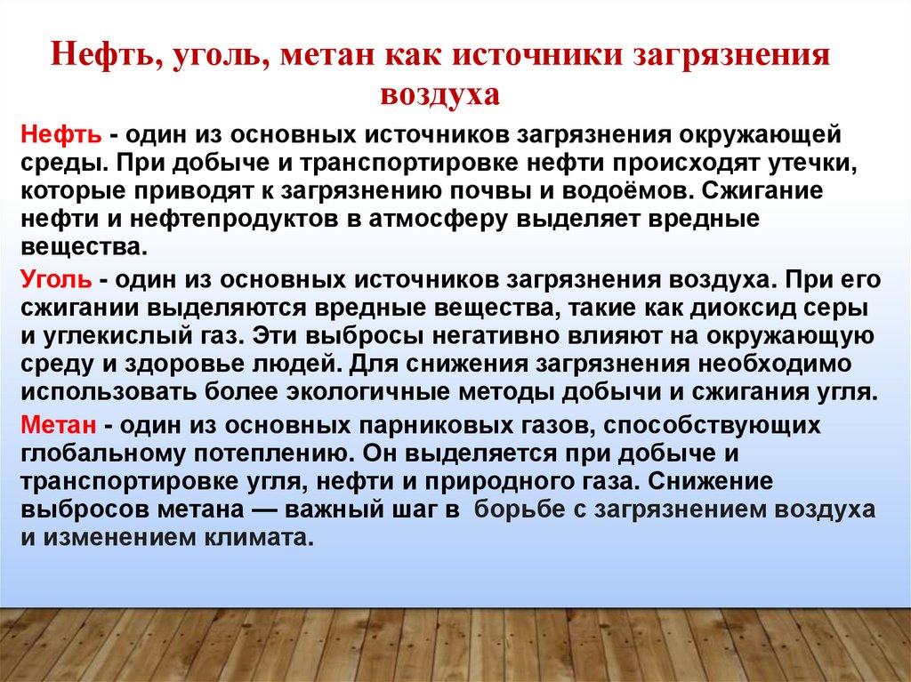 Нефть, уголь, метан как источники загрязнениявоздуха