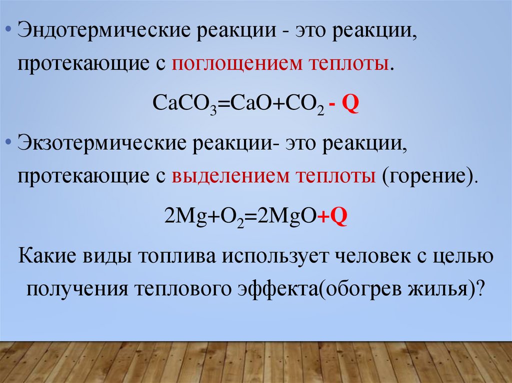 • Эндотермические реакции - это реакции,протекающие с поглощением теплоты.