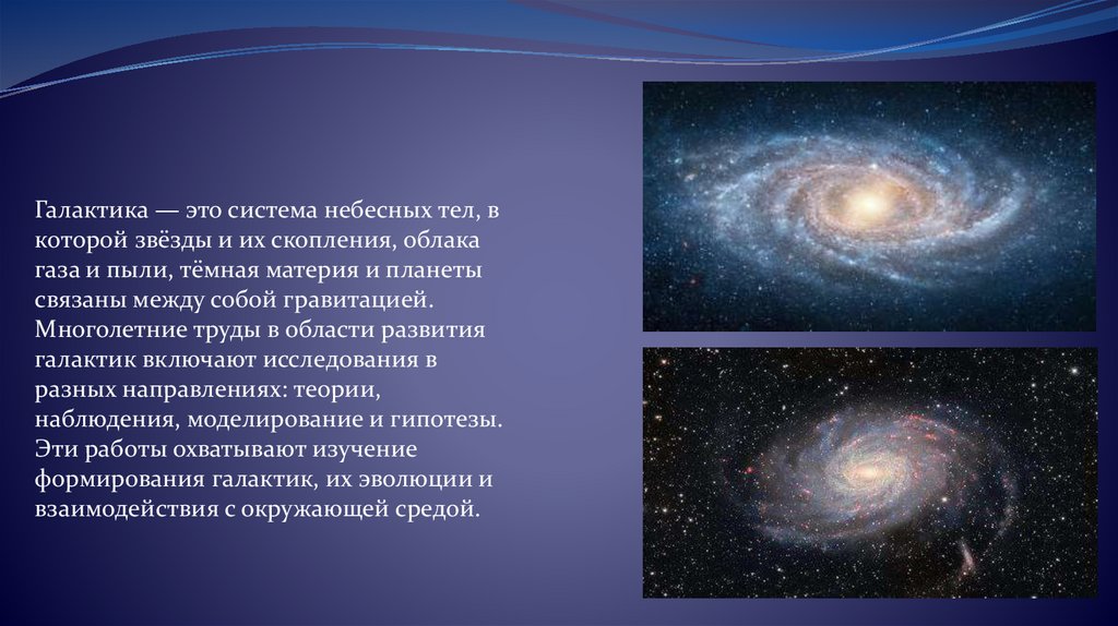 Галактика — это система небесных тел, вкоторой звёзды и их скопления, облака