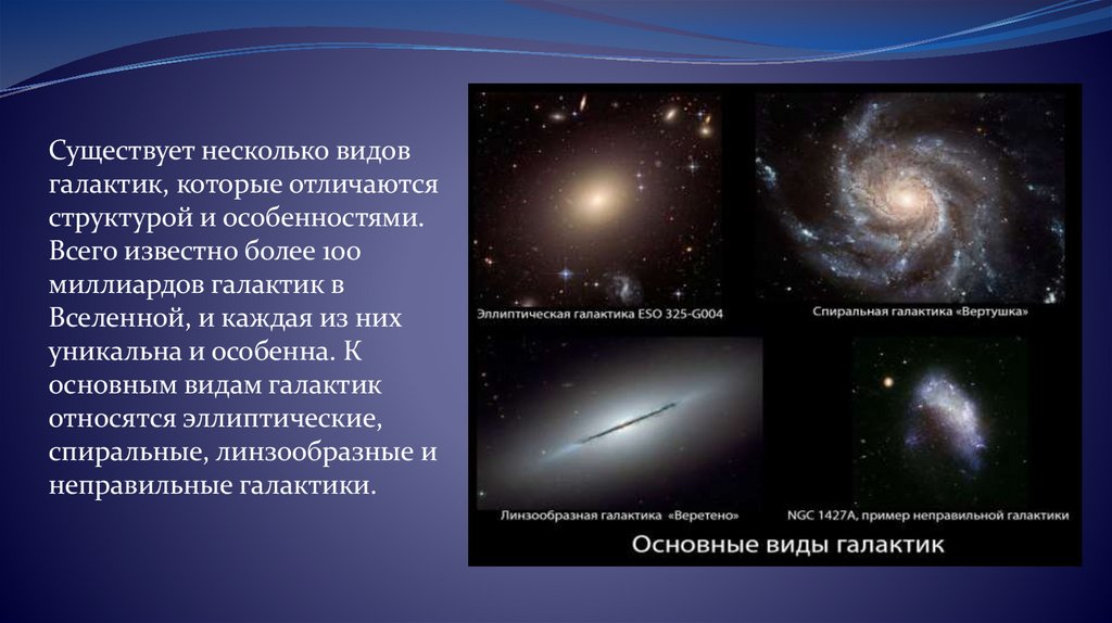 Цель данной работы: изучить мир галактик, их структуру, происхождение, а также процессы их