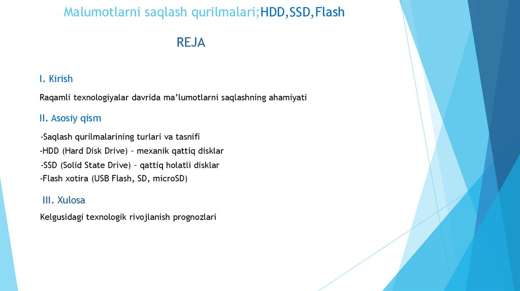 1. Malumotlarni saqlash qurilmalari;HDD,SSD,Flash