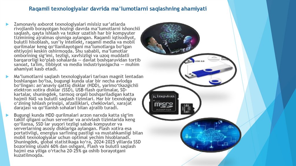 Raqamli texnologiyalar davrida ma’lumotlarni saqlashning ahamiyatiZamonaviy axborot texnologiyalari mislsiz sur’atlarda