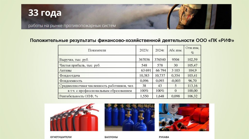 Положительные результаты финансово-хозяйственной деятельности ООО «ПК «РИФ»2023г.