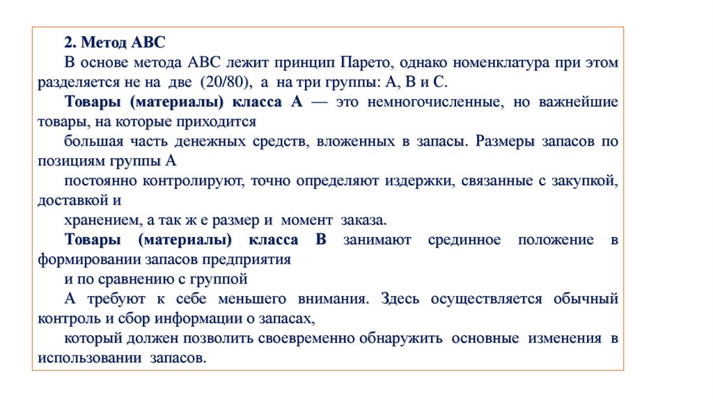 2. Метод АВСВ основе метода ABC лежит принцип Парето, однако номенклатура при этом