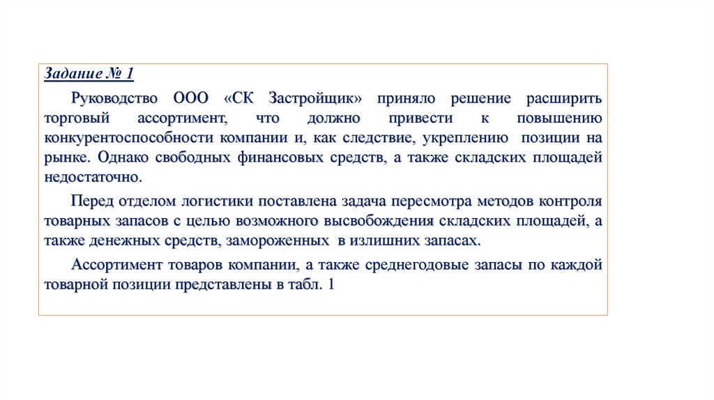 Задание № 1Руководство ООО «СК Застройщик» приняло решение расширить