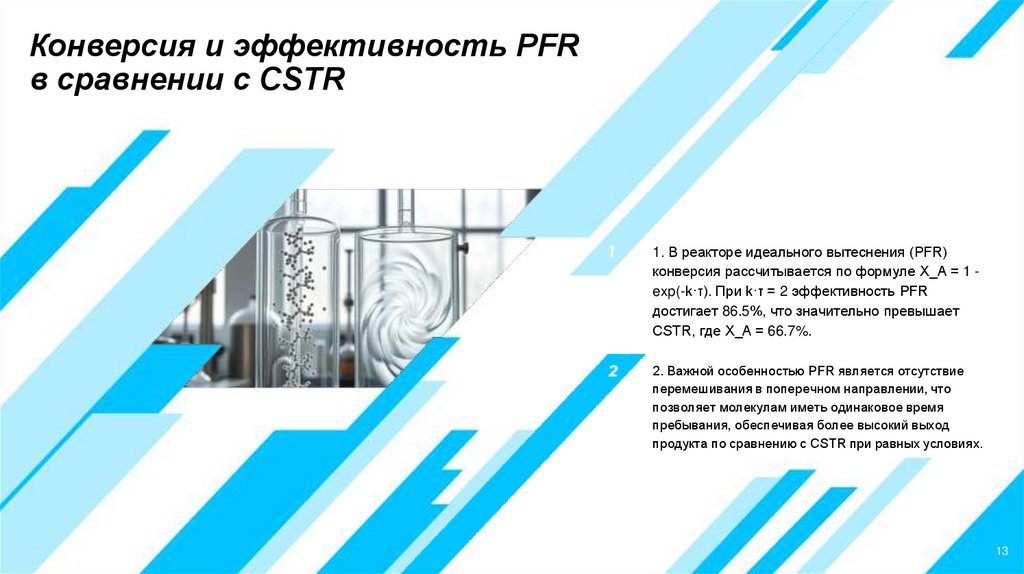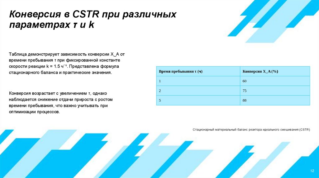 Конверсия выражается формулой X_A = k·τ / (1 + k·τ).