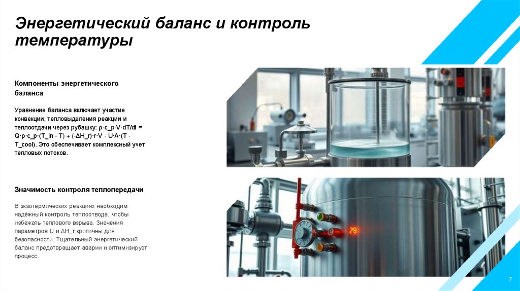 Q·ρ·c_p·(T_in - T) + (-ΔH_r)·r·V - U·A·(T T_cool). Это обеспечивает комплексный учет
