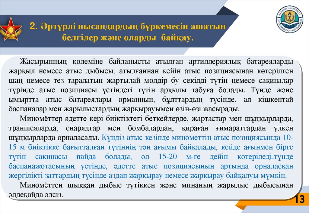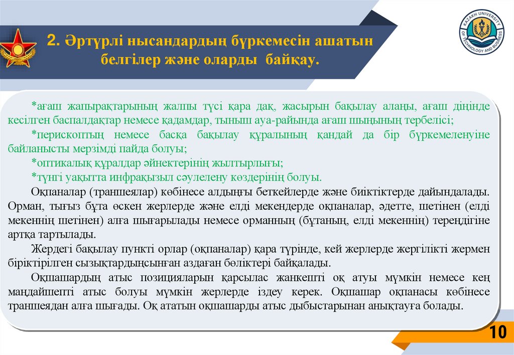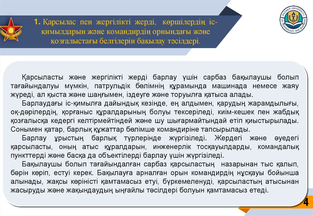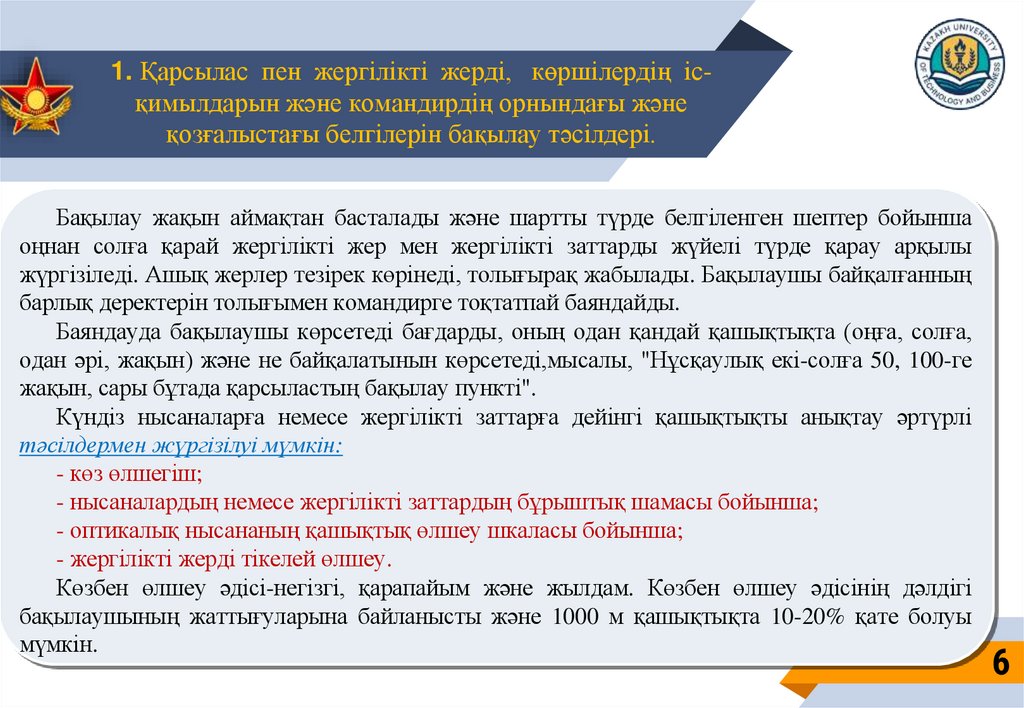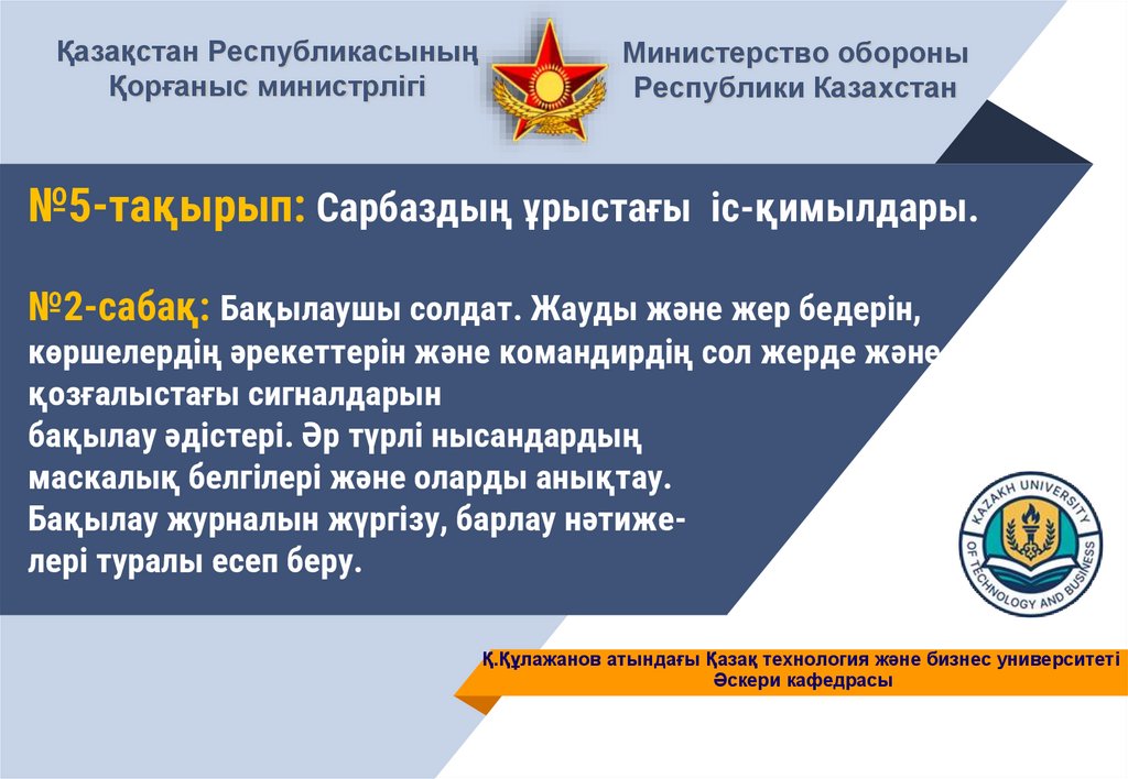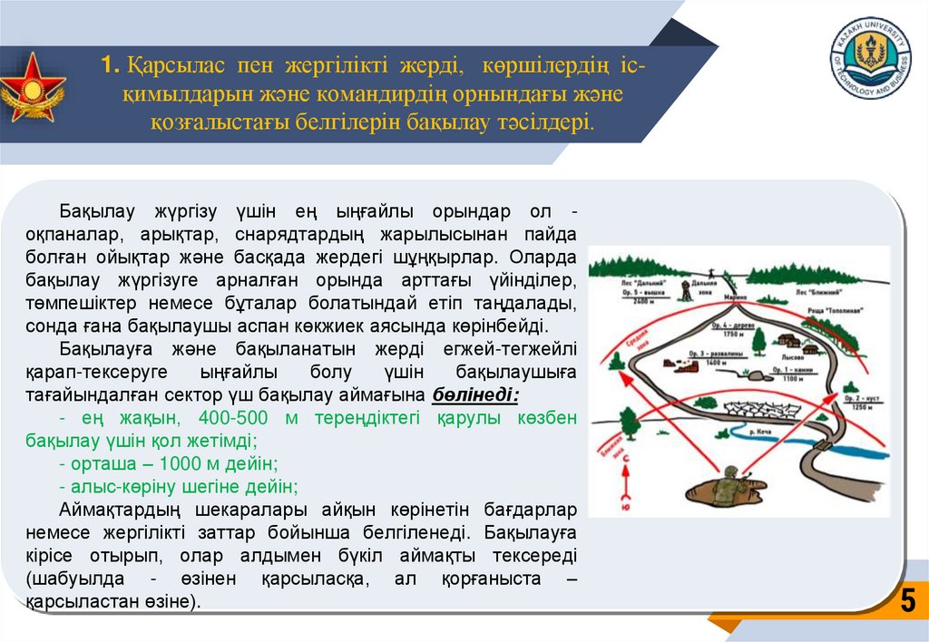 1. №5-тақырып: Сарбаздың ұрыстағы іс-қимылдары. №2-сабақ: Бақылаушы солдат. Жауды және жер бедерін, көршелердің әрекеттерін және