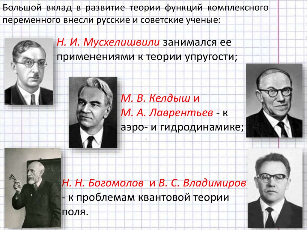 Большой вклад в развитие теории функций комплексногопеременного внесли русские и советские ученые: