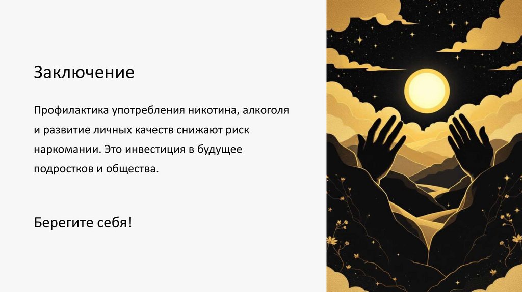 ЗаключениеПрофилактика употребления никотина, алкоголя