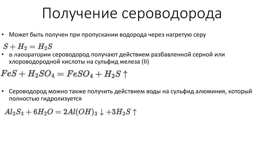 • Сероводород можно также получить действием воды на сульфид алюминия, который