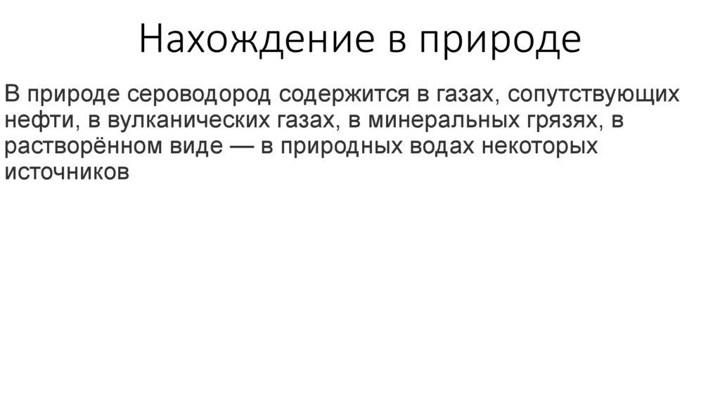 Нахождение в природеВ природе сероводород содержится в газах, сопутствующих