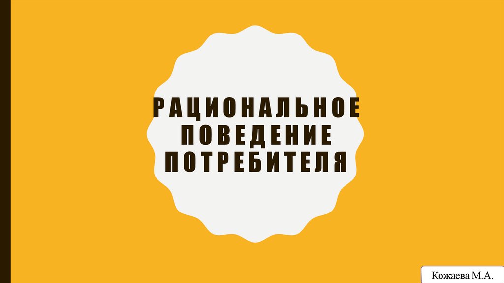 1. Р А Ц И О Н А Л Ь Н О Е П О В Е Д Е Н И Е П О Т Р Е Б И Т Е Л Я