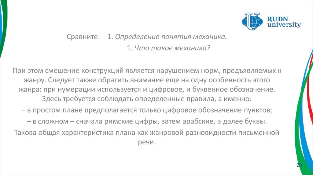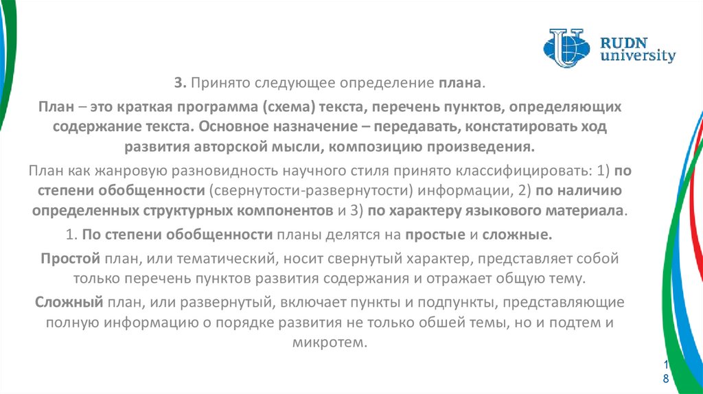 плана – перечень в сжатой форме структурно-содержательных компонентов