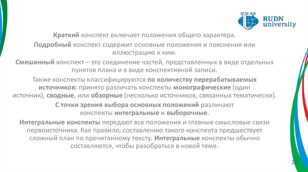 Каковы основные виды конспекта? Охарактеризуйте
