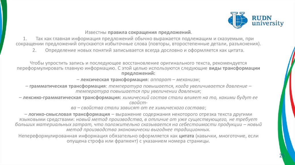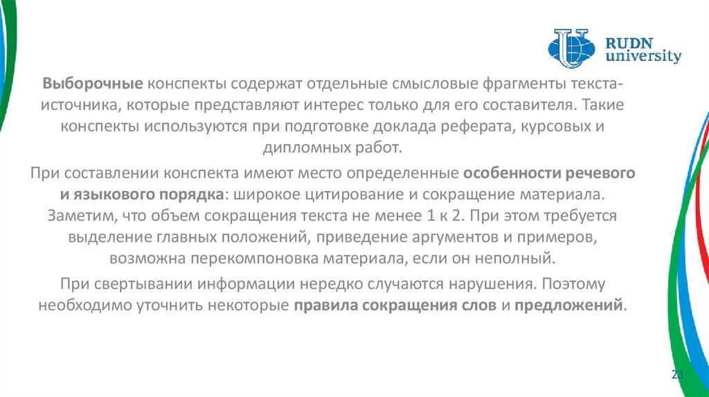 Так как реферат – это всегда сокращенный текст, то при свертывании нередко