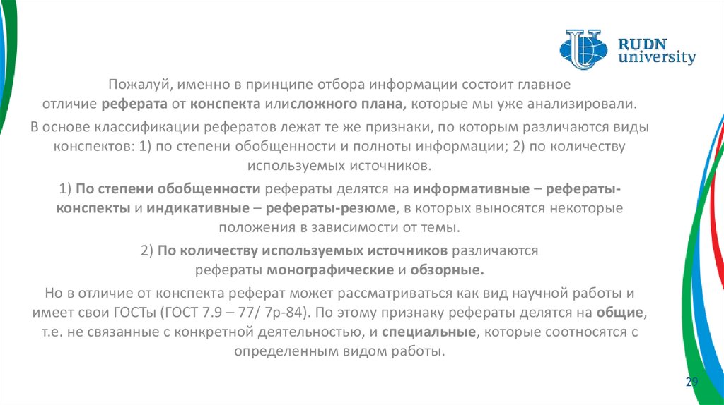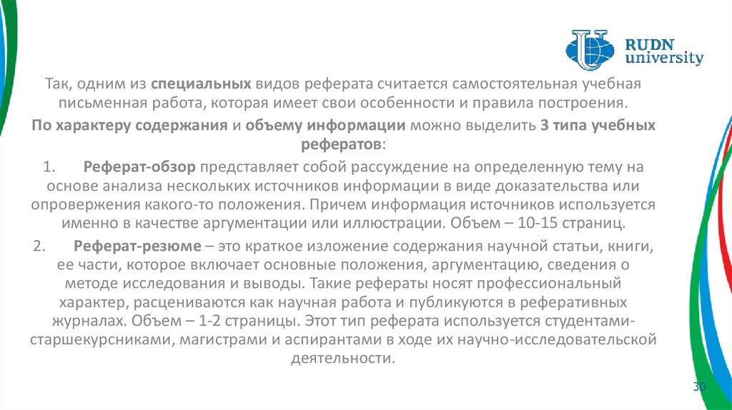 и оформления реферата-обзора, который является наиболее распространенной