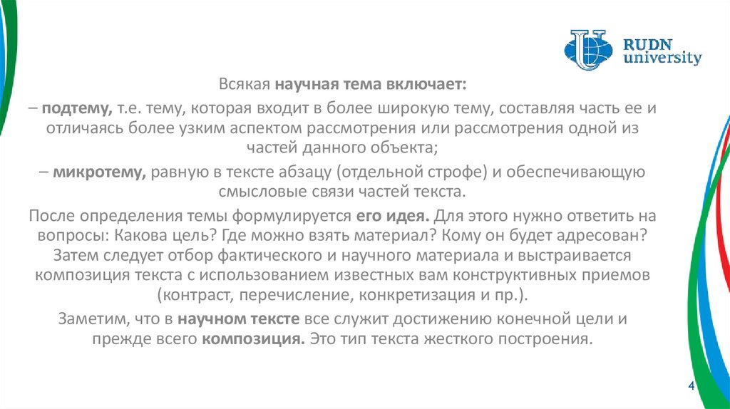 Всякая научная тема включает:– подтему, т.е. тему, которая входит в более широкую тему, составляя часть ее и