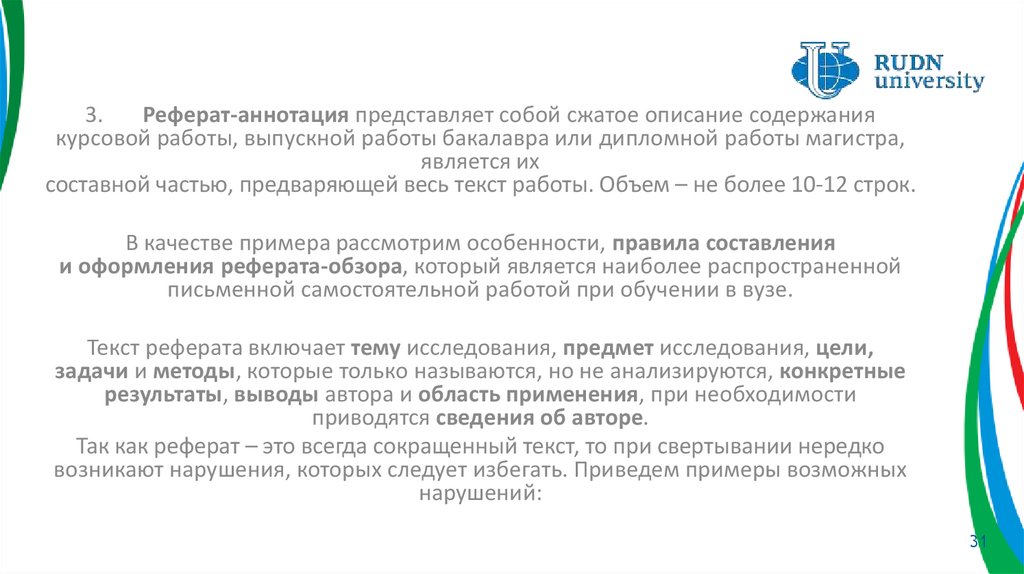 3.Реферат-аннотация представляет собой сжатое описание содержания