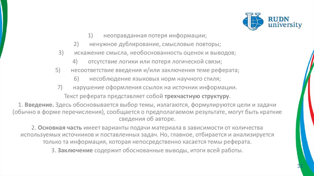 только та информация, которая непосредственно касается темы реферата.