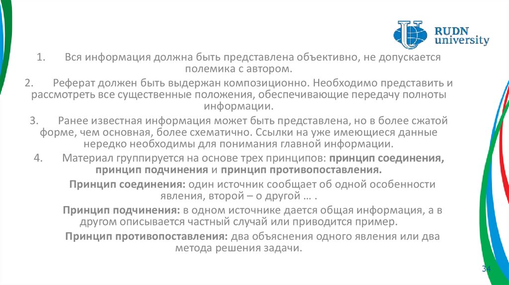 1.Вся информация должна быть представлена объективно, не допускается
