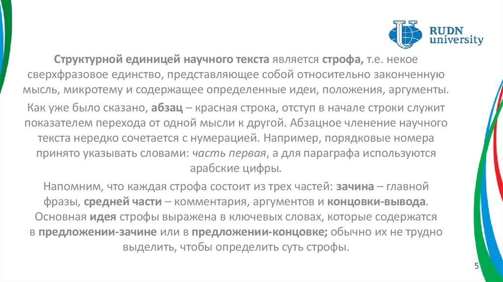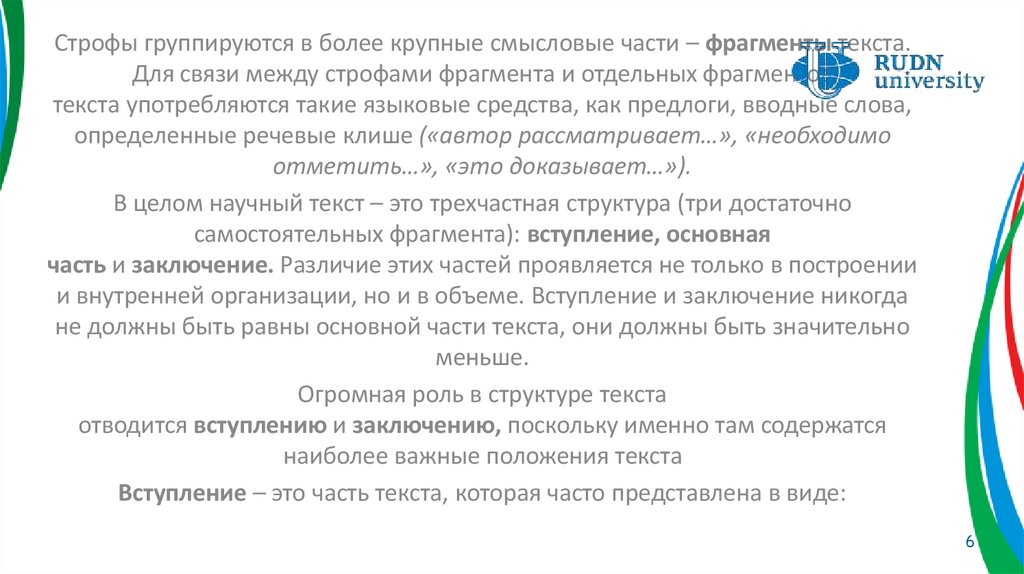 Структурной единицей научного текста является строфа, т.е. некоесверхфразовое единство, представляющее собой относительно законченную