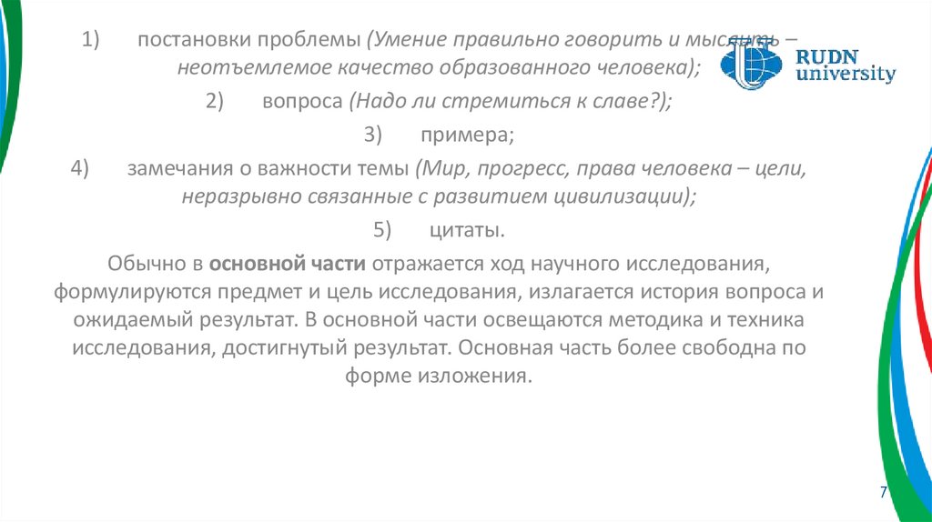 исследования, достигнутый результат. Основная часть более свободна по