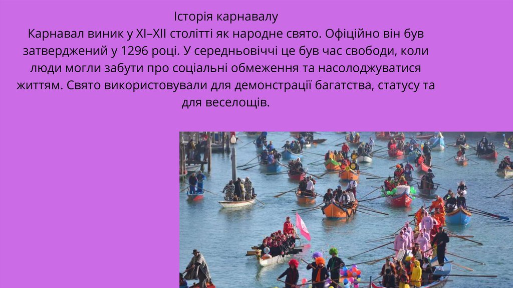 Історія карнавалуКарнавал виник у XI–XII столітті як народне свято. Офіційно він був