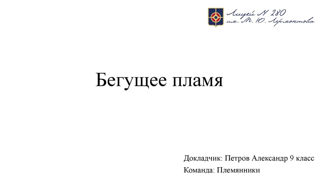 Бегущее пламяДокладчик: Петров Александр 9 класс