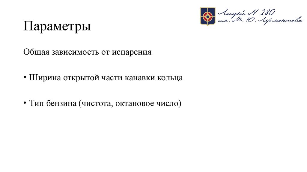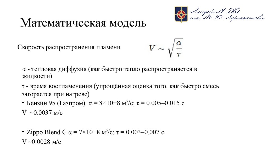 • Бензин 95 (Газпром) α = 8×10−8 м2/с τ = ; τ = 0.005–0.015 с
