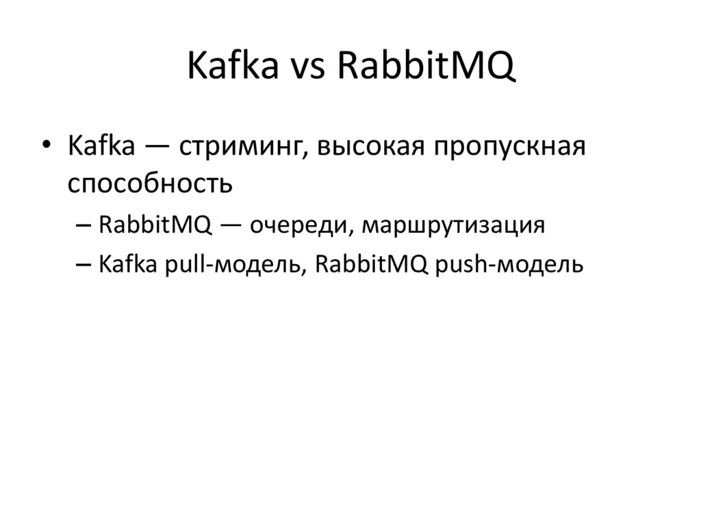 Kafka vs RabbitMQ• Kafka — стриминг, высокая пропускная