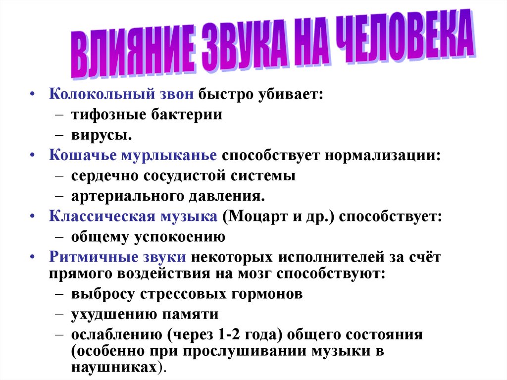 • Колокольный звон быстро убивает:– тифозные бактерии
