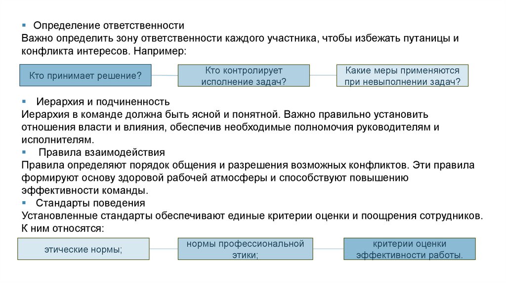 Определение ответственностиВажно определить зону ответственности каждого участника, чтобы избежать путаницы и