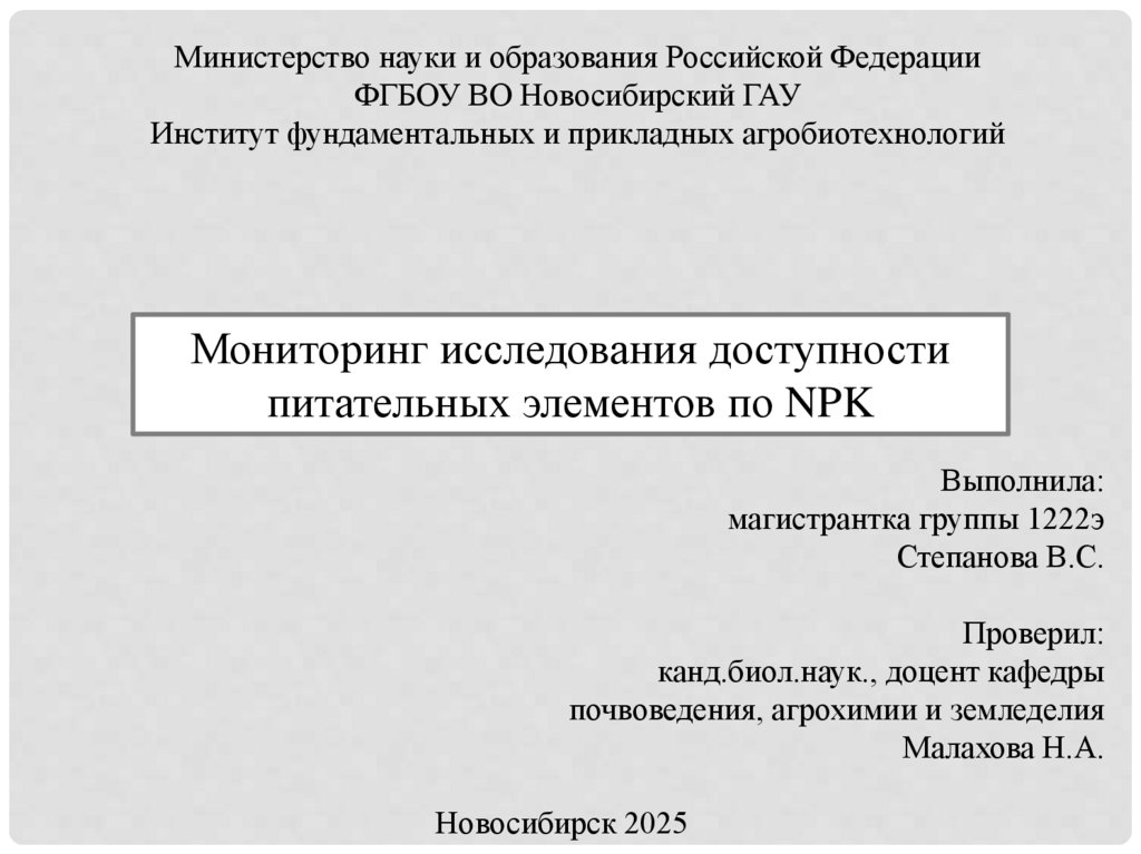 Министерство науки и образования Российской ФедерацииФГБОУ ВО Новосибирский ГАУ