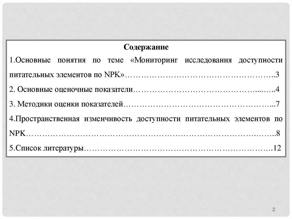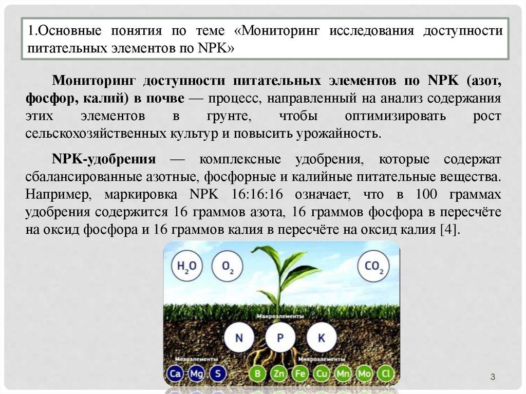 1.Основные понятия по теме «Мониторинг исследования доступностипитательных элементов по NPK»