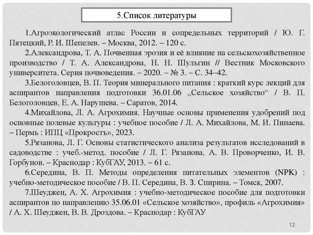 5.Список литературы1.Агроэкологический атлас России и сопредельных территорий / Ю. Г.