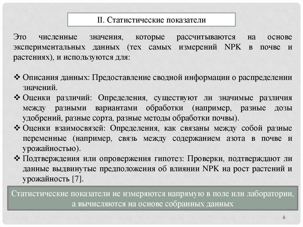 II. Статистические показателиЭто численные значения, которые рассчитываются на основе