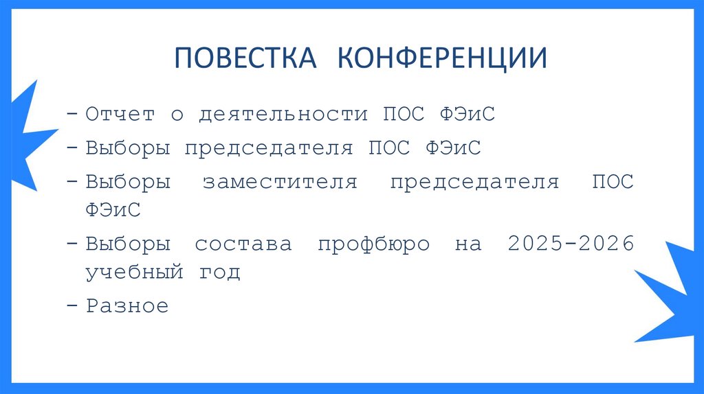 ПОВЕСТКА КОНФЕРЕНЦИИ- Отчет о деятельности ПОС ФЭиС