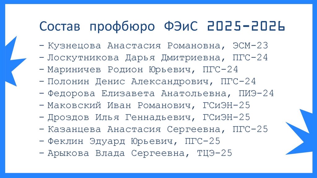 Состав профбюро ФЭиС 2025-2026- Кузнецова Анастасия Романовна, ЭСМ-23