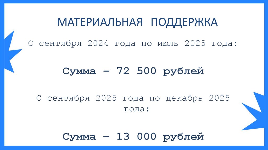 МАТЕРИАЛЬНАЯ ПОДДЕРЖКАС сентября 2024 года по июль 2025 года: