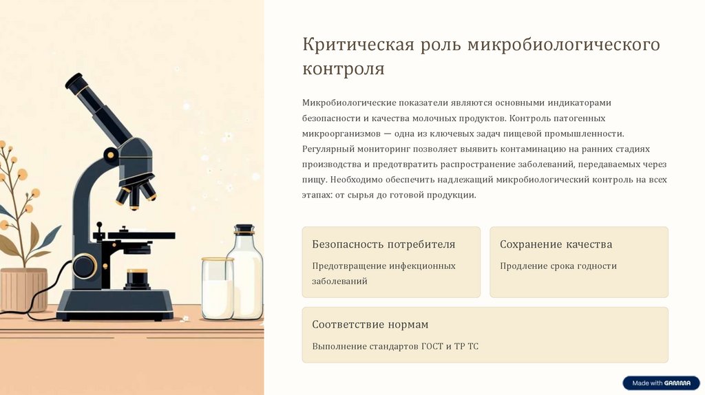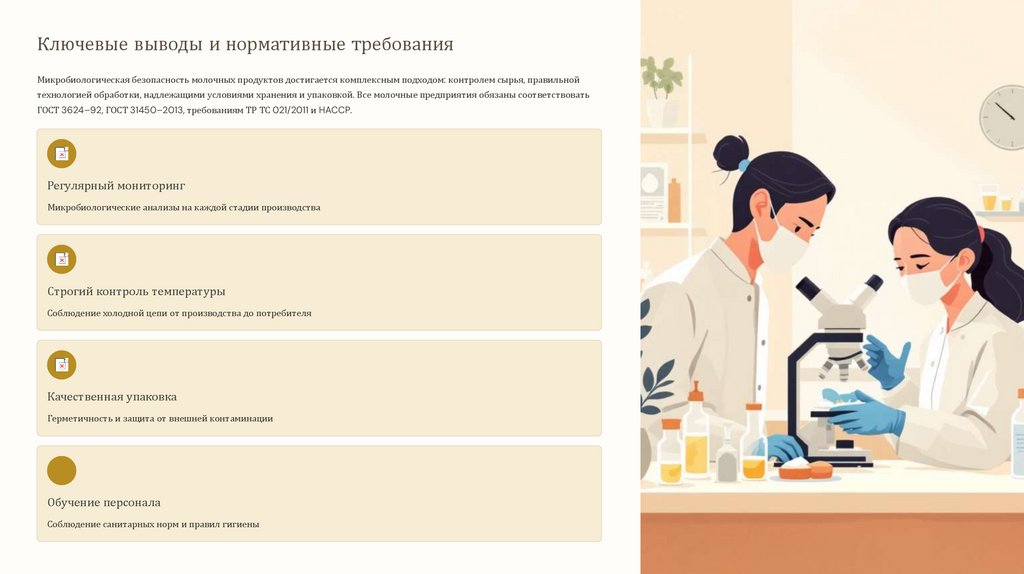 Ключевые выводы и нормативные требованияМикробиологическая безопасность молочных продуктов достигается комплексным подходом: контролем сырья, правильной