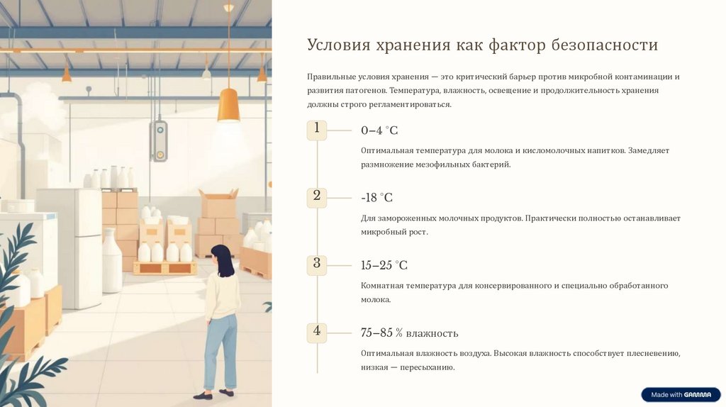 Условия хранения как фактор безопасностиПравильные условия хранения — это критический барьер против микробной контаминации и