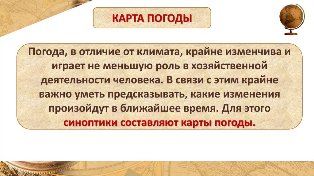 КАРТА ПОГОДЫПогода, в отличие от климата, крайне изменчива и