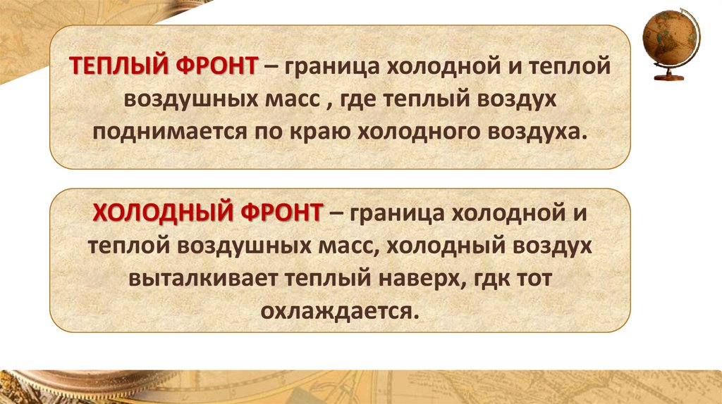 Типы воздушных масс на территории россии. Атмосферные фронты. Циклоны и антициклоны