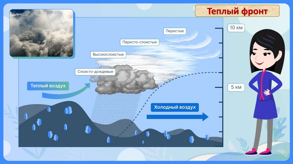 ТЕПЛЫЙ ФРОНТ – граница холодной и теплойвоздушных масс , где теплый воздух