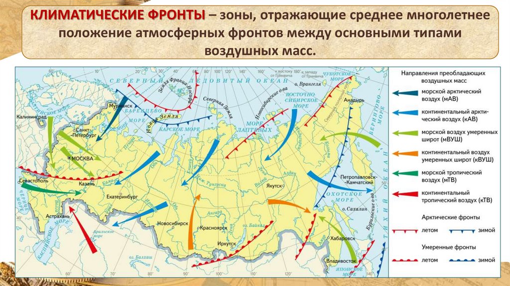 ТИПЫ ВОЗДУШНЫХ МАССНА ТЕРРИТОРИИ РОССИИ.