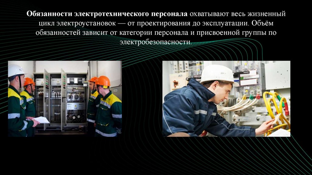 Обязанности электротехнического персонала охватывают весь жизненныйцикл электроустановок — от проектирования до эксплуатации. Объём