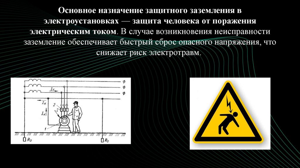 Основное назначение защитного заземления вэлектроустановках — защита человека от поражения